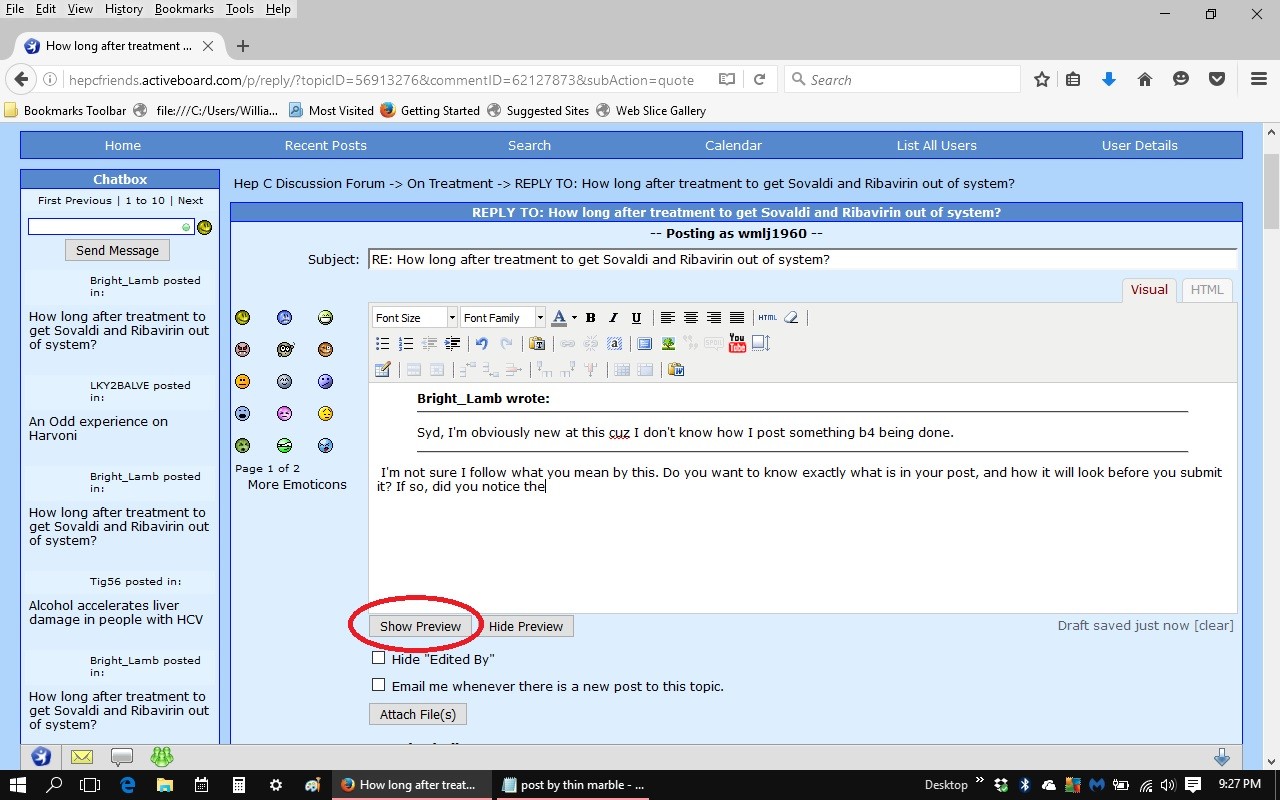 I'd like to direct you to the signature lines that reside under our posts. There you will find the dates of treatment, type of treatment and the SVR date. It often includes a little information about the genotype, lab tests, viral load and fibrosis stage. It's helpful when replying. You will find the instructions to set that up, as well as the abbreviations we use here. Here's the link to that information: