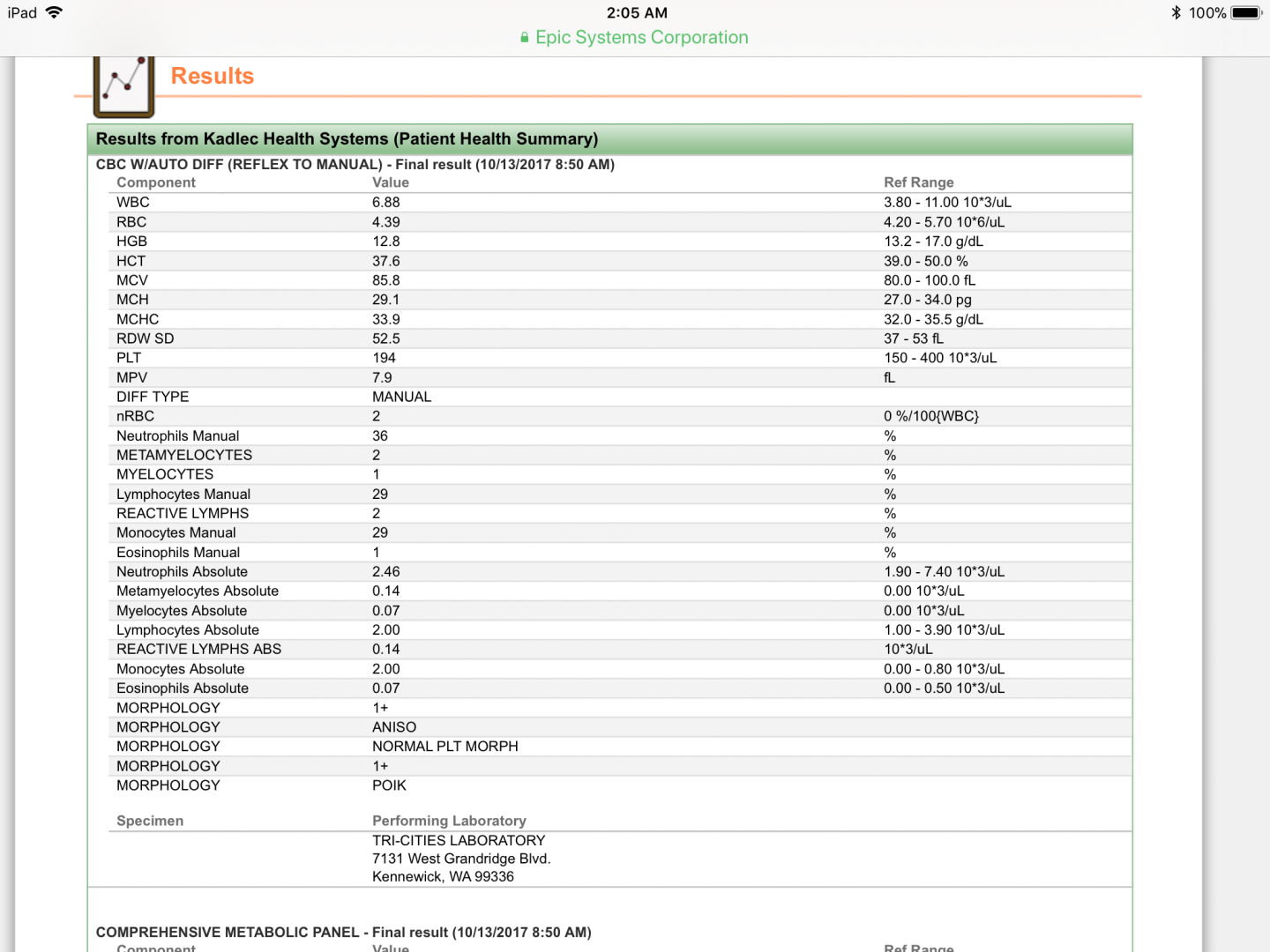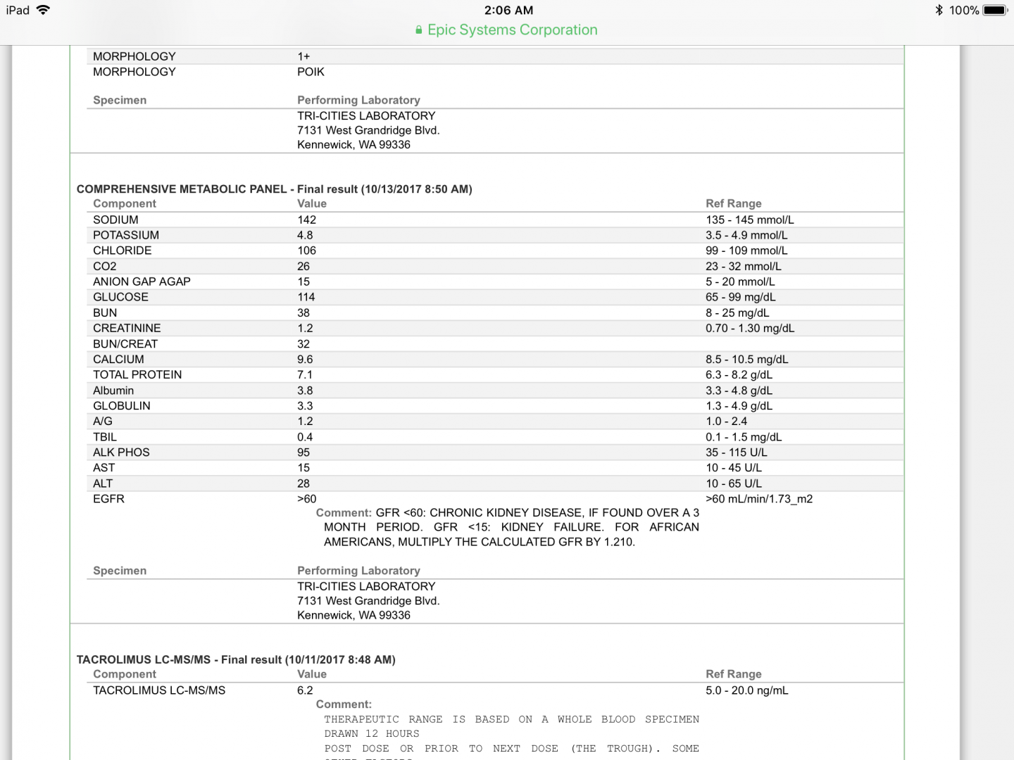 Obvious (easy) things to see, were glucose and BUN a tad up, HGB/HCT a tad down (but all of these were only by tads).
