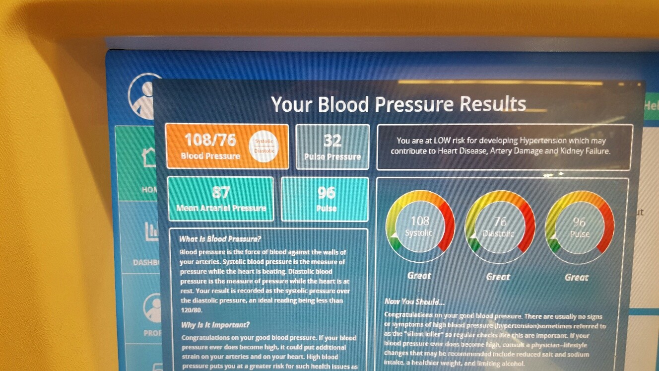 BP was 114 over 70 before treatment. I have no dinner so I will check at machine at safeway. Not as accurate but it will give me a ballpark.