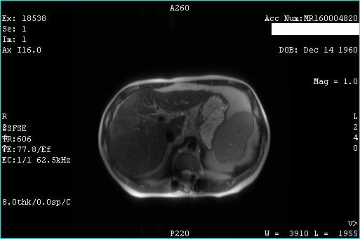 Image A260 is the only one through your liver and spleen. I don't understand the sequence used, but what the hell is the hyperintense stuff around your spleen? Looks like ascites, but it depends on what MRI technique is being used. Post some others if you like, particularly ones labelled T1 or T2. Even better, wait for the formal Radiology report. Cheers.