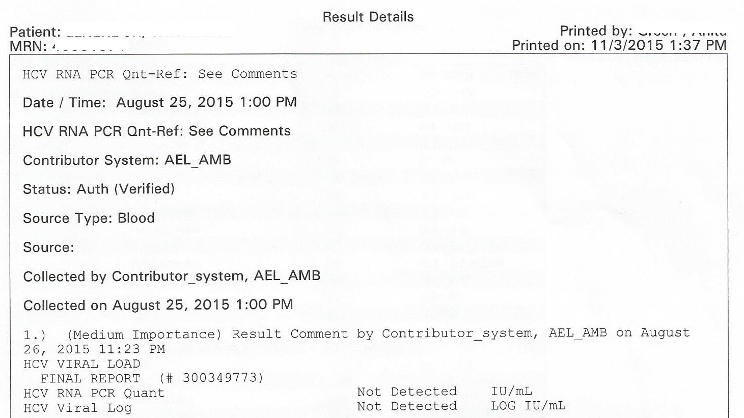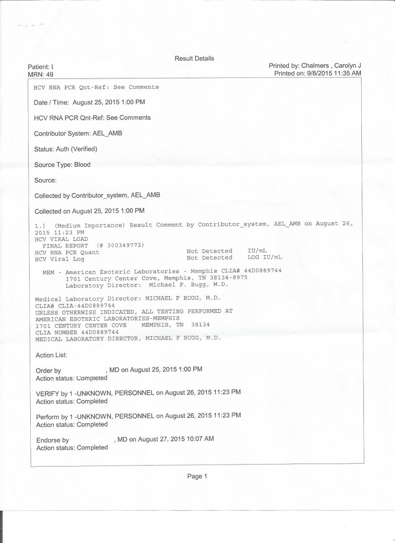 Viral load test was done 8-25-15. Results are attached. I'm sure happy about this!!!