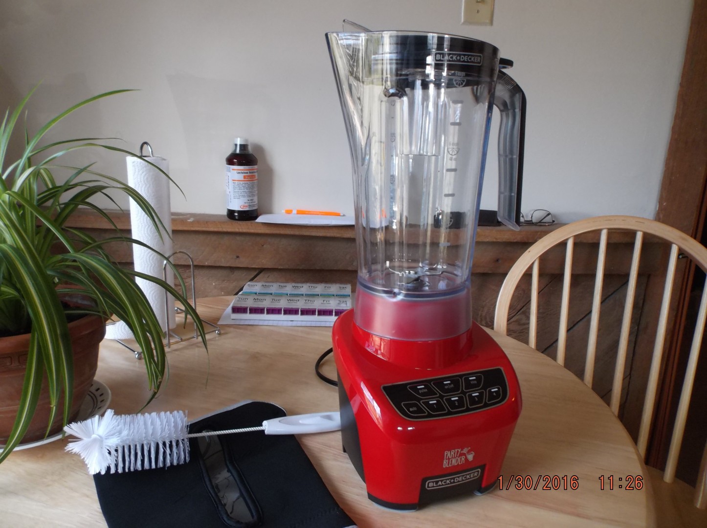 Thanks for this thread Dave! I never thought about, or made a smoothie until I saw this thread but I'm hooked now. This came right on time for me due to me not being able to eat solid food for a couple of more weeks due to dental surgery etc. Today I bought a Black & Decker Party Blender (650 watt) with 72oz jug. This thing is pretty big (see attachment) and seems to have all the power I'll need. It chewed right through my 1st attempt at a smoothie which turned out very very good! I was hungry: Fresh lettuce, cucumber, celery, frozen pineapple, spinach, broccoli, bannana, kiwi, mango, green apple, purified water, ice cubes.