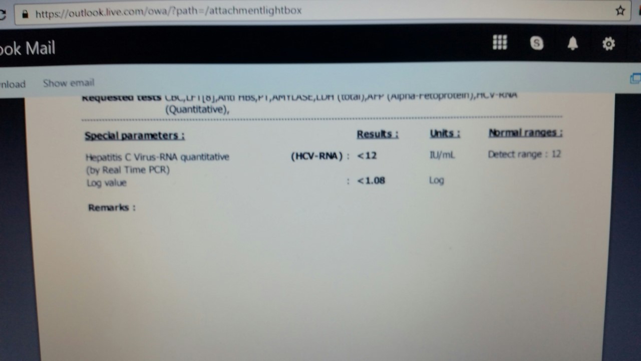 So nice for you Allison!! Congrats on your 4 week results. And soon, the same will follow for Ruby, Phoneix too! Allison, did you mention what your prior VL load/ALT/AST was, to compare to your newly found UND and now "normal" LFT's? Can't wait to hear Ruby's LFT's if they come tomorrow or as soon as they do. Phoneix do you think your LFT's will arrive before your PCR result does?