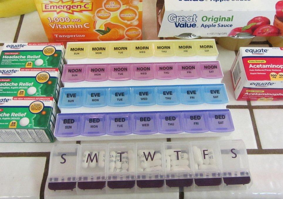 I'm sure everyone has a system for tracking the med schedule. I certainly have mine. My riba comes in a big bottle with a 28 day supply. I can't take pills from that because sometimes I don't know if I'm coming or going, much less whether I took my pills 5 minutes ago or not. So I count out my 5 pills the night before and put in a smaller dedicated bottle. At 6 pm, there ought to be 3 left, and at 10 pm, none. Same with the Vic, but I am already starting from a little bottle with a 1-day supply. The 10 pm time is rough and confusing, as I'm typically woken up by my cell phone from my nightly nap, and it takes me a while to figure out if its time for meds or time to go to work, or if I hit the snooze a couple of times, whether I already took them. All I have to do is look on the counter and find my little bottle with 4 Vics left, and its ok. My daily working supply doesn't go in the cabinet and never leaves the kitchen counter. I "own" that little corner. Don't touch it, clean it, or rearrange it!