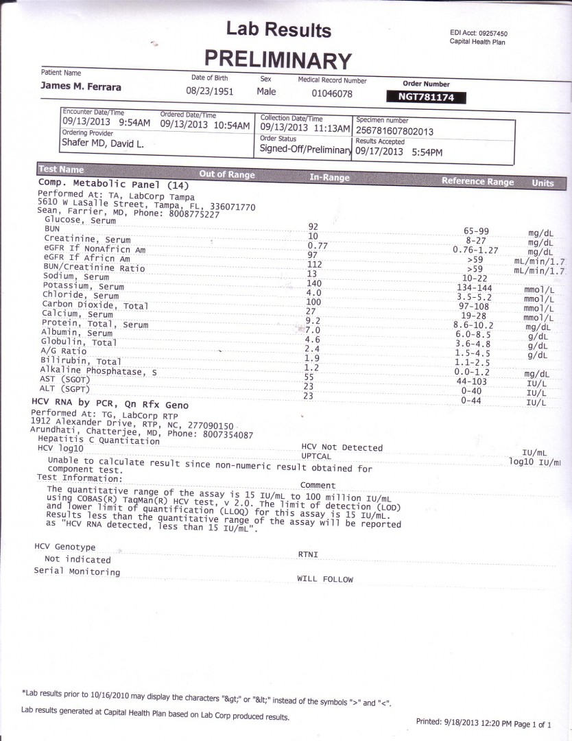 Hope all continues to go well for you Mike your Lab numbers really looks great, some day I will join you and will look back at those days as the days when we use to have HCV.