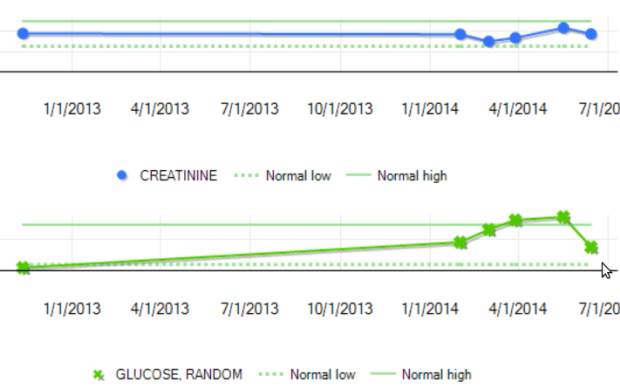 This shows a spike in my glucose then a drop back down to normal, as my ALT went down, the glucose went up/