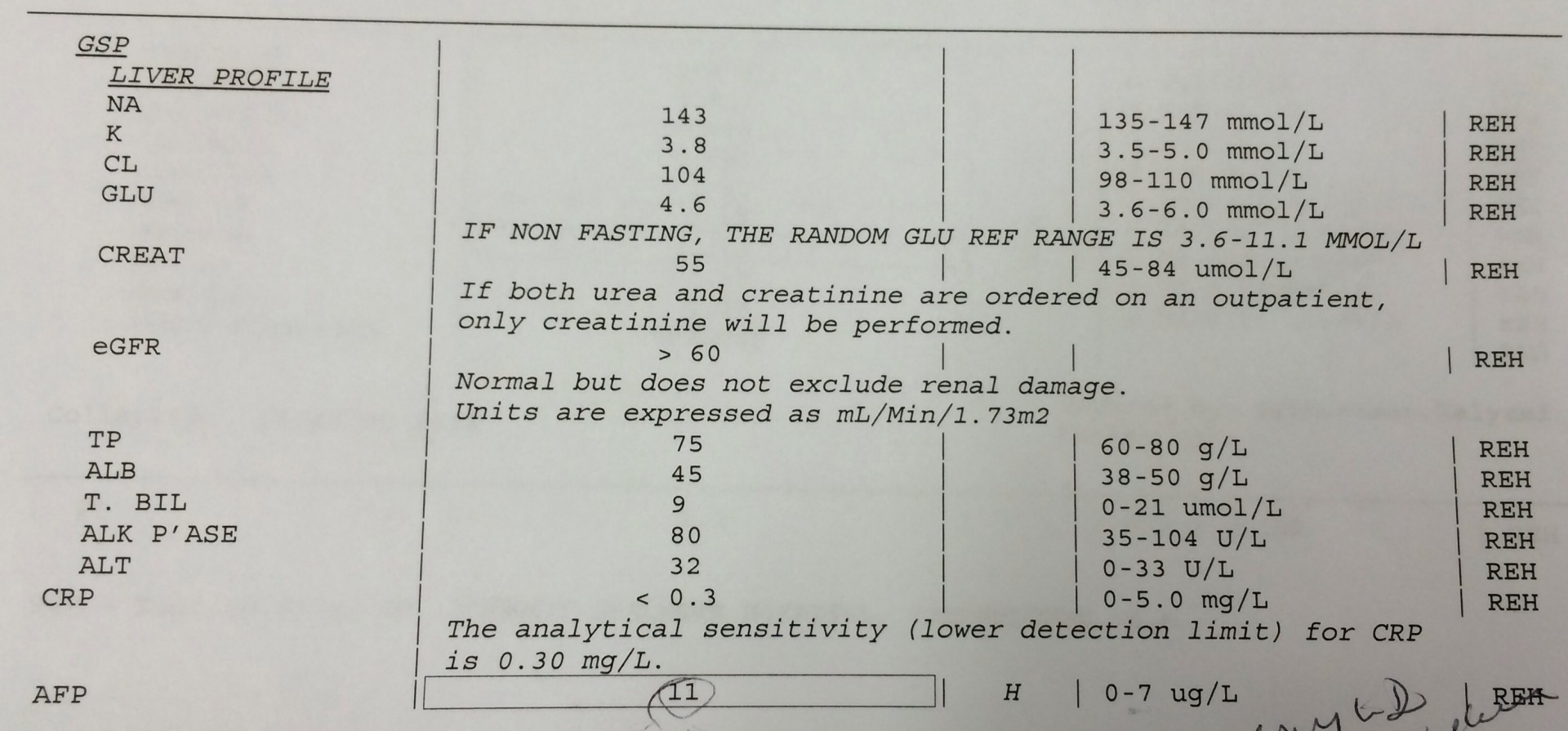 So I got my latest Bloodwork tests back, and I'm unsure of what to think. Platelets seem low at 82 and AFP is high at 11. The rest looks ok. Any ideas of what might be going on? Isn't AFP a tumour marker And why is my liver profile normal? Isn't 82 quite low for platelets While off treatment for so long. Also had an ultrasound and she said that turned out fine with nothing showing as abnormal.