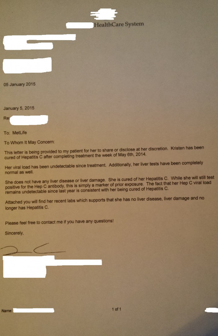 Well done on your letter and your doctor's letter. I agree it's safe to say that MetLife has many policy holders with HCV.