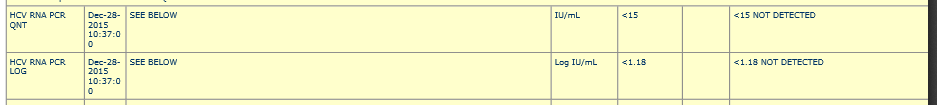 Just wanted to share my lab results...SVR12!!! Couldn't think of a better way to start the New Year! Thanks to everyone who carried my sorry butt through this. I am truly grateful for the support and encouragement I've gotten from each and every one of you. Gonna go share a happy dance with my lovely wife! I hope everyone has a safe, happy New Year, and God bless us all.
