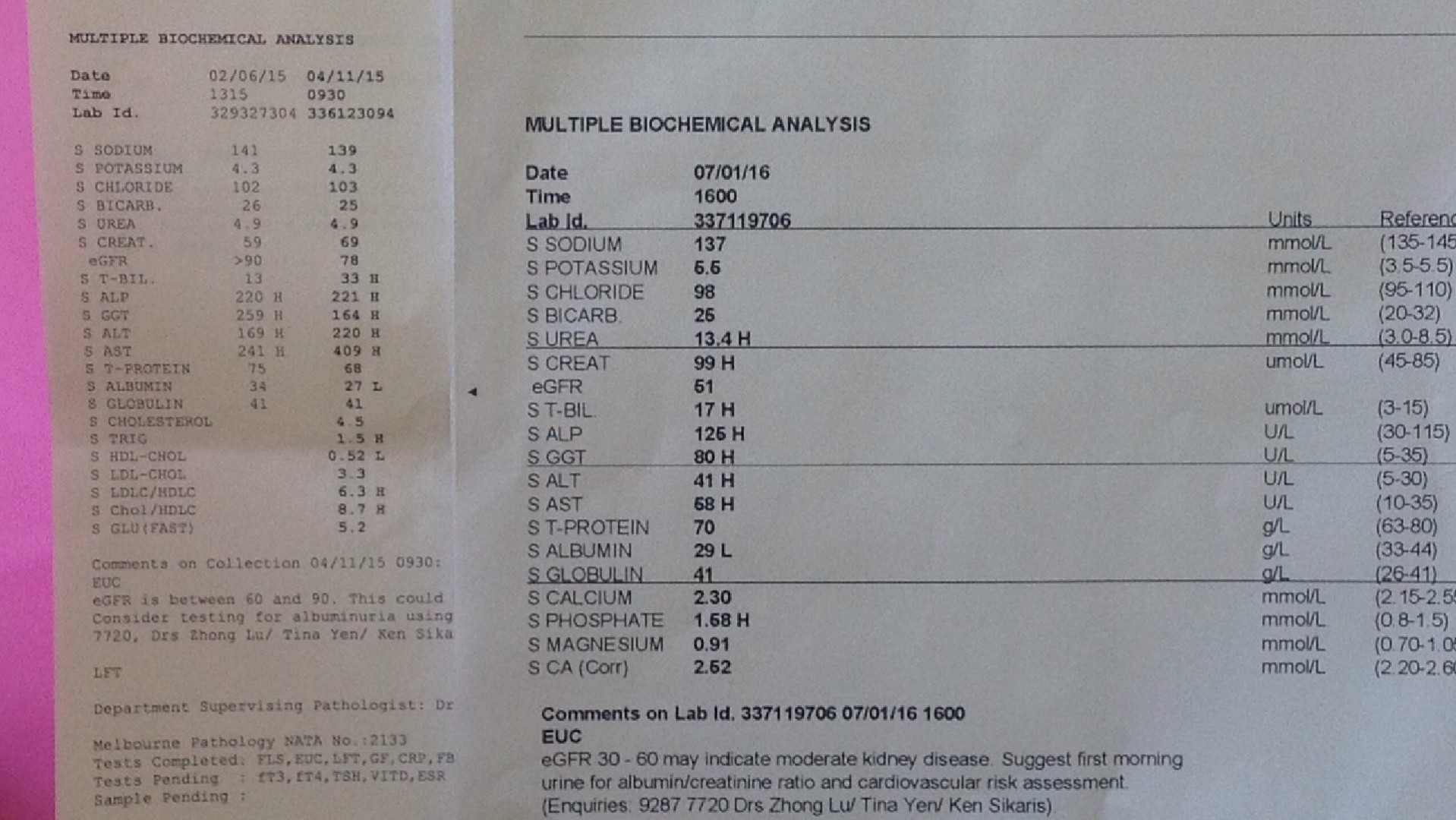 these are from June and November 15 and Jan this year, four ekes into treatment.