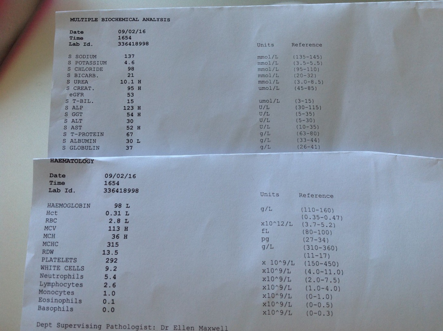 My latest blood tests are written back to back on one sheet and I'm too tired to think how I could upload them as one image - suppose I could always upload 2 images!!! That's the level of cognitive function I'm dealing with here.