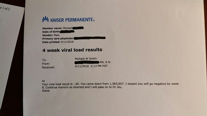 Outstanding Mike! You're responding very well and I completely agree that you'll be undetected at EOT. The good news just continues to pour in. We're witness to the real deal in HCV treatment. So many new treatments in the pipeline too, but it seems that Gilead has found their pot of gold in Harvoni. Congratulations on the good news Mike!
