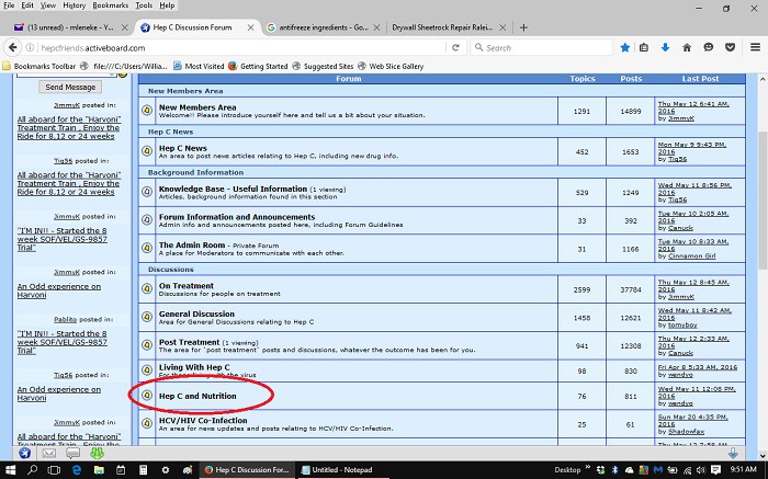 1 - Go to the 'Home' page listing all the forum categories, select 'Hep C and Nutrition' (circled in red, 1st attached image below),