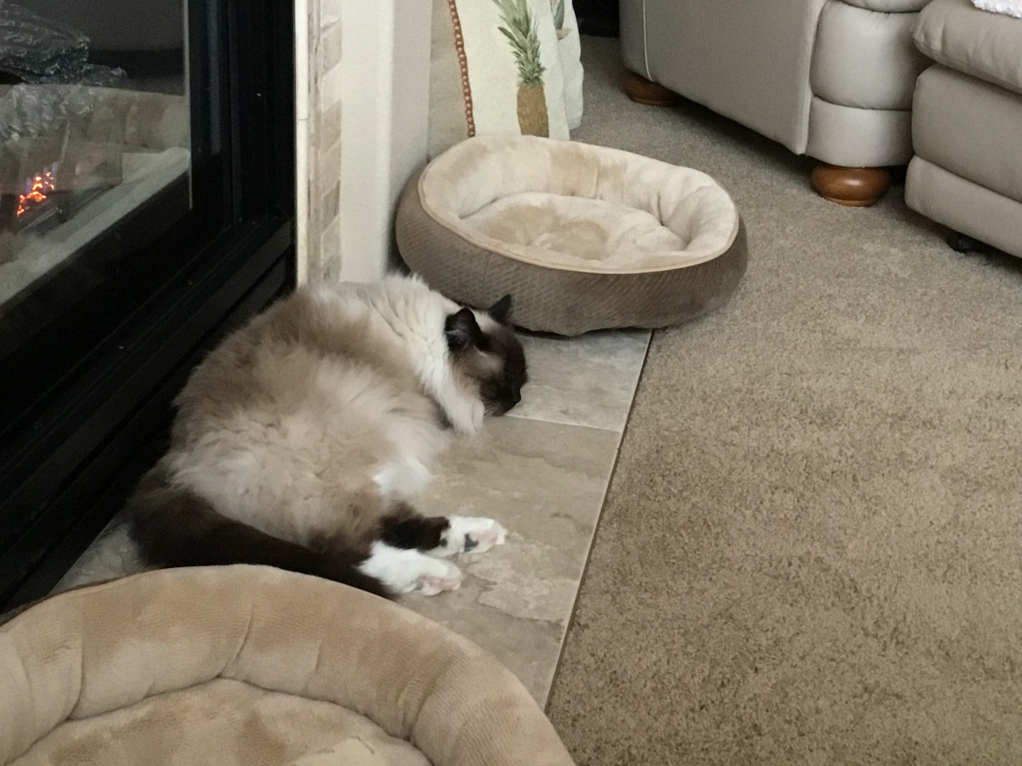 Thanks Eveyone. I just wish we could have been there. Kona has a brother named ROCKY, he is a Ragdoll seal point.He is 3 months younger than KONA.They are the best of friends.Both cats came from the same breeder.Rocky is very affectionate- he is glued to Chris. Rocky is 13 years old. I may get KONA #3 the first of the year!! KONA IS ON TOP OF COUCH AND THATS ROCKY BELOW HIM ON COUCH. KONA PIC RC