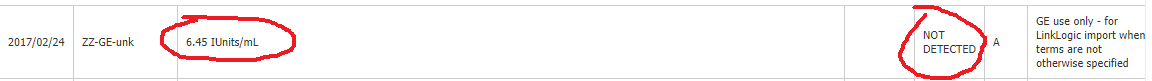 It doesn't specifically say that the "ZZ-GE-unk" column is the viral load count anywhere but it does make the most sense when considering the other lab results on the site have the correct log numbers for my viral load at that time.