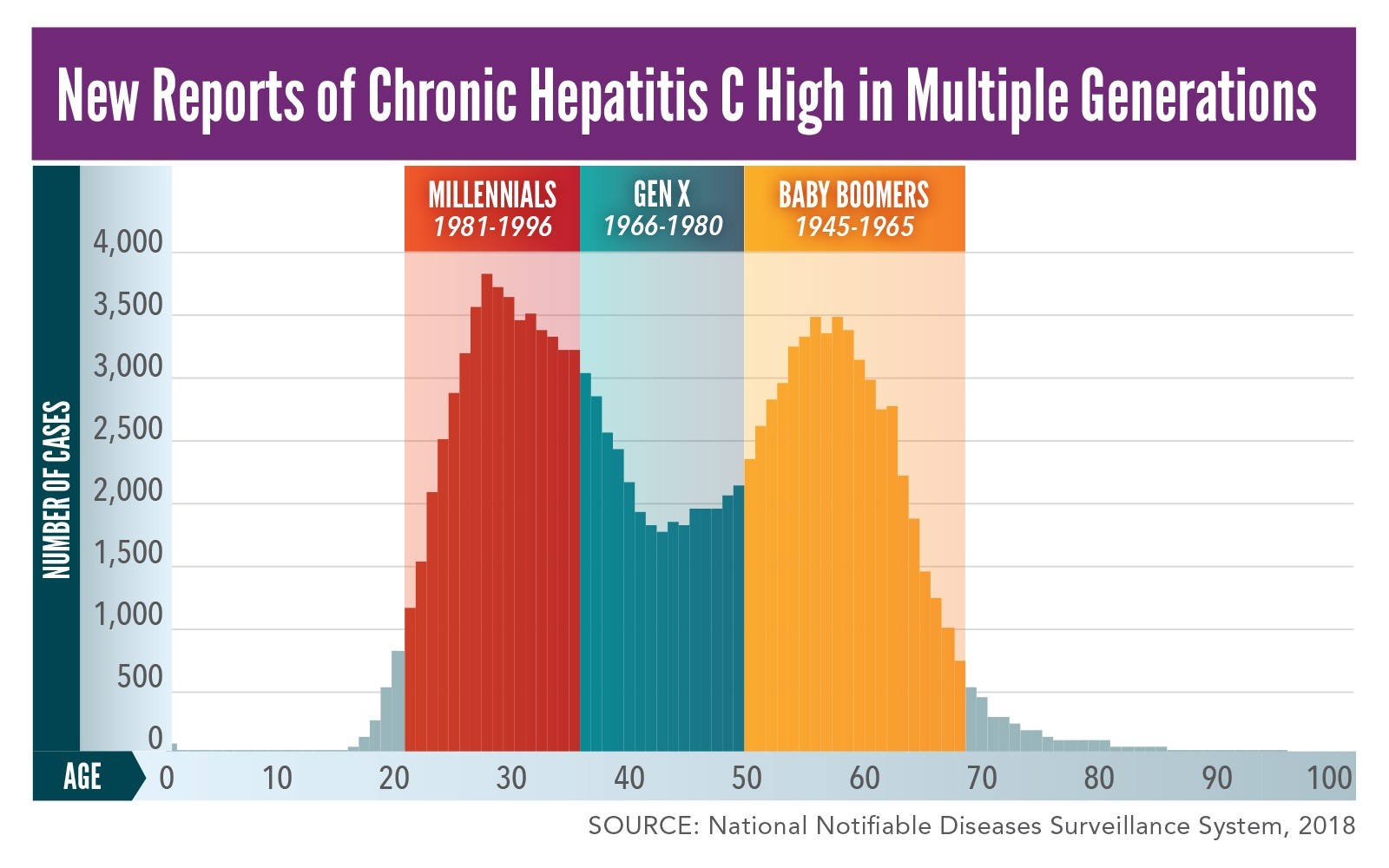Hepatitis C is increasing dramatically in the United States, particularly among younger adults, and 4 in 10 people don’t even know they have it. Hepatitis C is usually spread through blood, often from injection drug use. Less commonly, hepatitis C is spread through sex or from an infected mother to her infant during pregnancy or childbirth. An acute infection develops when someone is first infected. Some people clear the virus, but most people with acute hepatitis C will develop a long-term (chronic) infection. Left untreated, chronic hepatitis C can cause severe liver damage, liver cancer, and even death. But hepatitis C is curable. The first step to being cured is getting a hepatitis C blood test. CDC now recommends testing: