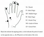 See the illustrations below for meridian points, use 2 fingers to tap the points, or rub the spot.